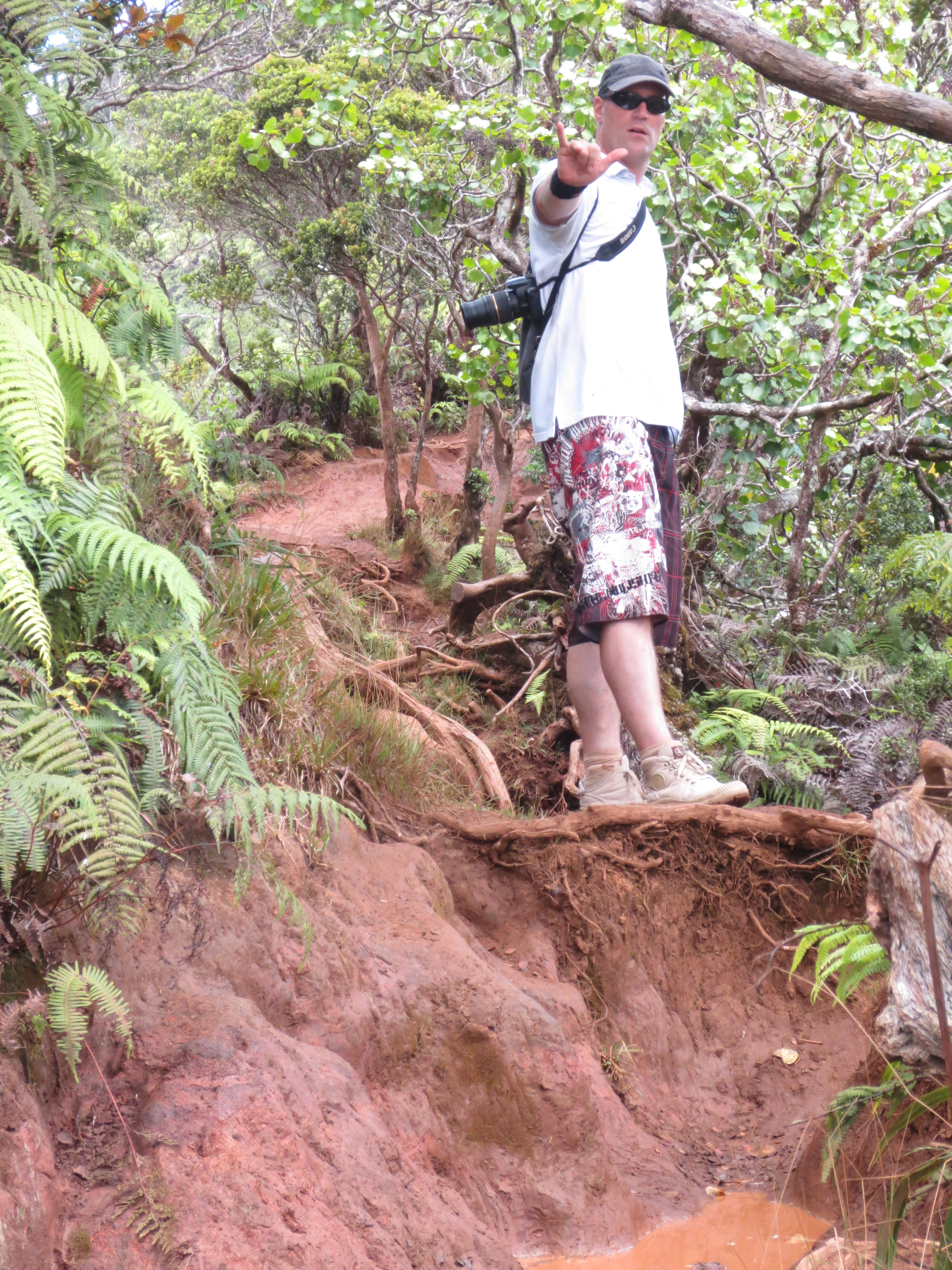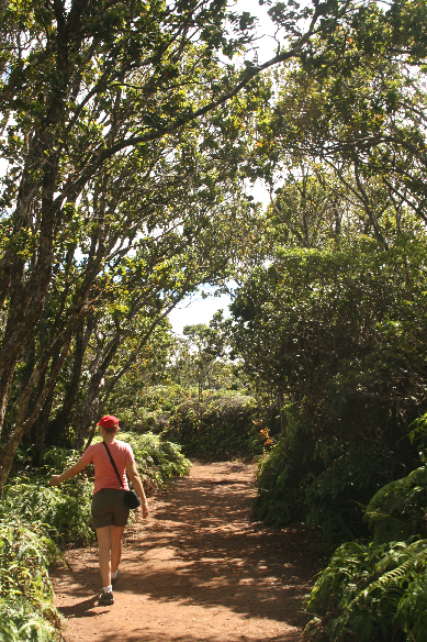Noch ein kleines Stück geht es mit dem Auto weiter zum nächsten Aussichtspunkt. Auch hier empfängt uns strahlend blauer Bilderbuchhimmel. Waimeame ist der feuchteste Punkt auf Erden. Das können wir kaum glauben. Danach geht es nur noch zu Fuß weiter…