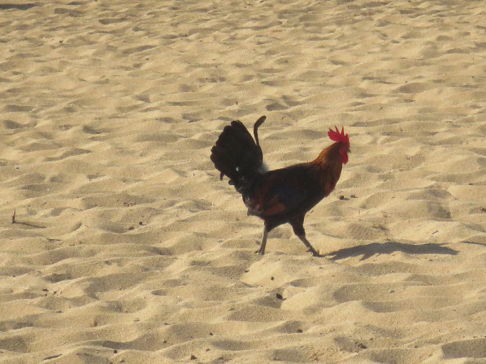 Einzig störend sind nur die Hühner, die am Strand herumlaufen und nach Essbarem schauen. Kickerickiiiii!