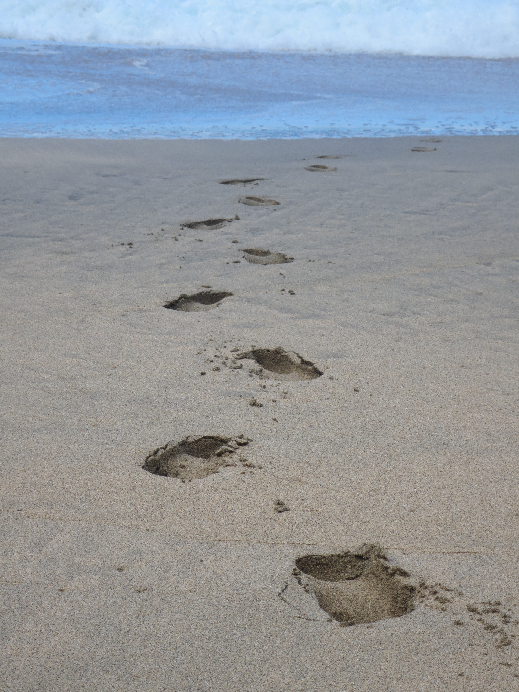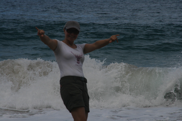 Der Strand, an den wir gelangen, ist wunderschön. Die Wellen tosen und die vielen Warnschilder weisen daraufhin, dass man hier nicht zwingend schwimmen sollte. Zu gefährlich, da die Strömung des Pazifik Jeden, der mehr als fünf Meter ins Wasser geht, unweigerlich mit sich zieht.