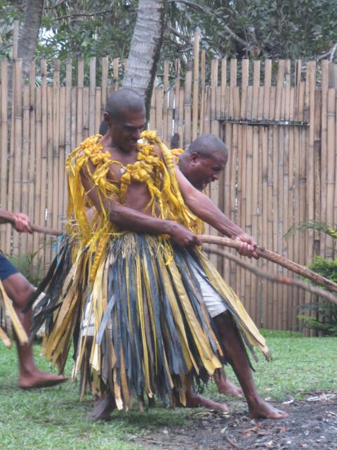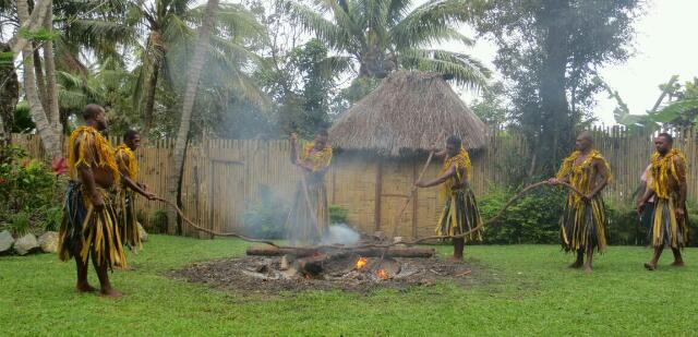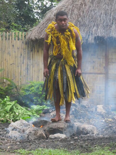 Typisch für die Fidschis, im Speziellen für die nah gelegene Insel Beqa, ist der Feuertanz. Dieser wird dort noch von vier Stämmen aufgeführt. Das lassen wir uns natürlich nicht entgehen. Bereits im zarten Alter von 8 Jahren beginnen die männlichn Stammesmitglieder die Kunst des Steine-Suchens, Feuer-Ausrichtens und über die Steine-Laufens. Auch hier werden wir wieder aufgefordert mitzumachen, aber das lehnen wir dankend ab.