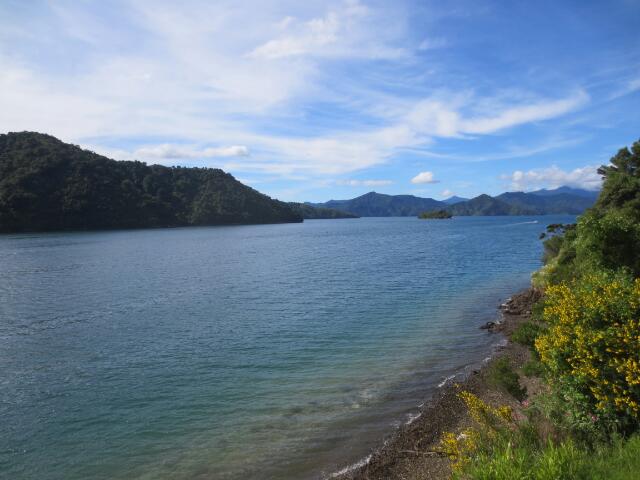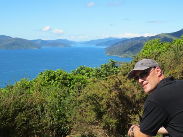 In Picton genießen wir bei einer Wanderung die Aussicht auf die Landschaft der südlichen Alpen.