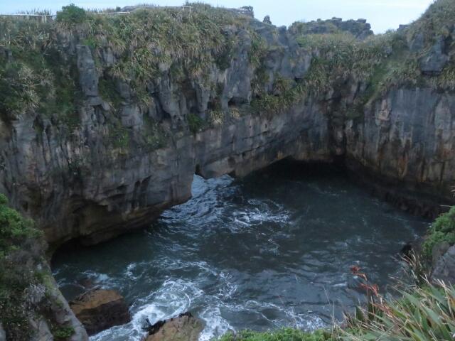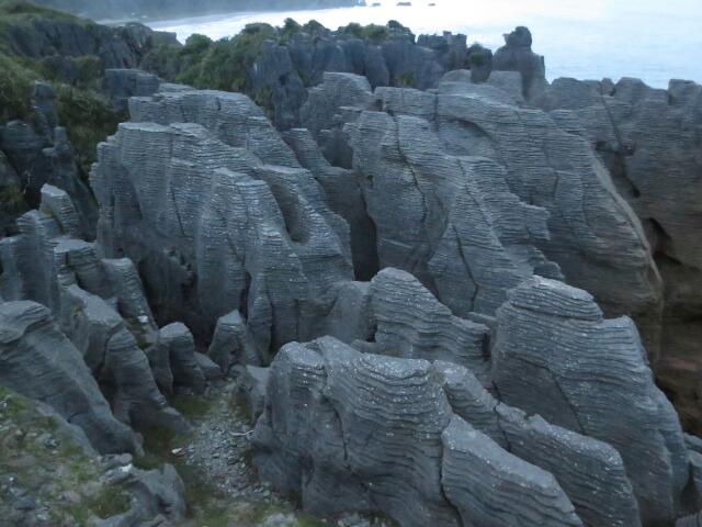 In Punakaika angekommen, quartieren wir uns ein. Mit zwei Gläsern, Salzstangen und einer guten Flasche neuseeländischem Rotwein im Gepäck machen wir eine Wanderung zu den berühmten Pancake Rocks. Das Glück ist ganz auf unserer Seite, denn diese Sehenswürdigkeit haben wir ganz für uns allein:-)