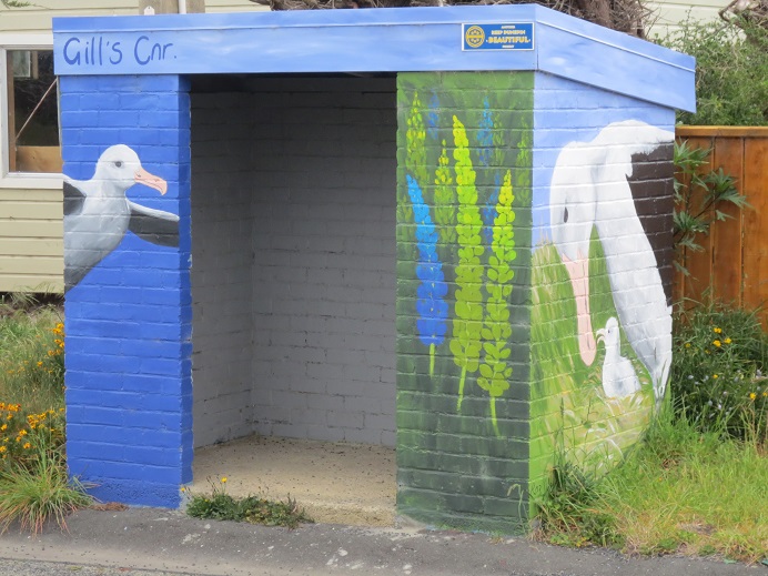 In Dunedin stehen die Tiere im Vordergrund. Daher steuern wir als erstes die Otago Halbinsel an, die von der Stadt aus erreichbar ist. Wir passieren einige witzige Häuser und bunte Bushaltestellen. Immer wieder entdecken wir in diesem Land die Liebe zum Detail.