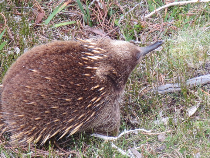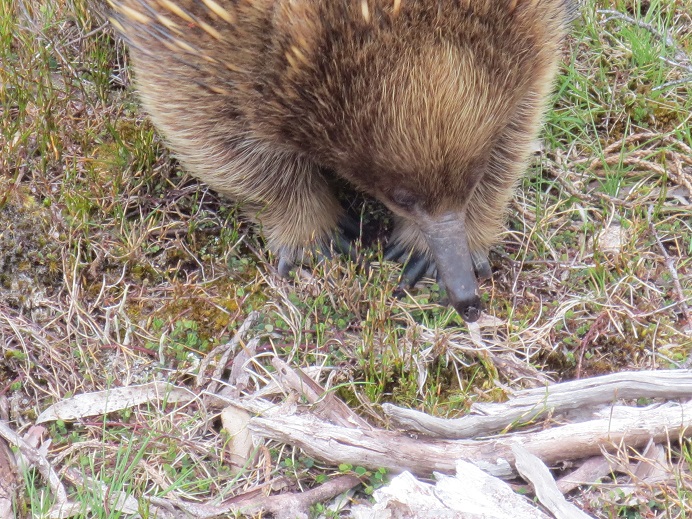 Bei wunderschönem Wetter starten wir unsere Fahrt in Richtung des Craddle Mountain auf 900 Meter Höhe. Der Österreicher Gustav Weindorfer hat übrigens den Anstoß gegeben, hier einen Nationalpark und damit ein Schutzgebiet zu errichten. Als wir oben ankommen, fängt es an zu regnen. Irgendwie mögen uns Berge nicht: Mount Cook im Regen, Mount Craddle im Regen…:-( Wenigstens werden wir von einem süßen Ameisenigel begrüßt. Die Igel sind ungefähr drei Mal so groß wie unsere deutschen Artgenossen und haben eine ganz lange Nase. Diese bohren sie immer wieder ins Erdreich auf der Suche nach Essen. Sehr süß!