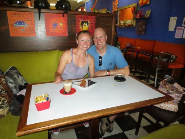 Der kleine Ort Kuranda liegt mitten im Regenwald und hat richtig Charme. Hier gibt es niedliche kleine Boutiquen, Cafés und eine deutsche Wurstbude. Wir gehen mal vorsichtig reinluken, aber spätestens als Ingo das Bild seiner Heimatstadt (Dom auf Leinwand) erkennt ist klar: hier wird eine Wurst gegessen. Mit Sauerkraut und Zwiebeln, werden wir auf deutsch gefragt? Ne, pur auf Brot 🙂