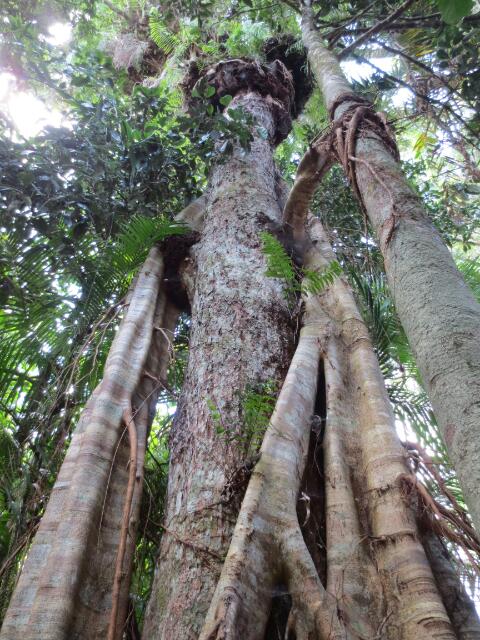 Zwischendurch kann man aussteigen und sich im Regemwald die Beine vertreten. Im Informationscenter erfahren wir richtig viel über die Struktur und das Leben im Regenwald. Beispielsweise gelangt nur 1% Prozent des Sonnenlichts bis zur Erde. Viele Pflanzen, besonders die Farnarten, von denen 30% aller australischen Arten auch im Regenwald vorkommen, haben spannende Methoden enrwickelt. Sie nutzen den Wind oder wandern selbst mit ihren Ästen auf höhere Bäume hinauf. Von unten sieht besonders der Korbfarn richtig cool aus.
