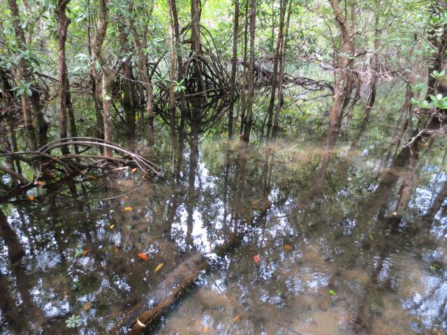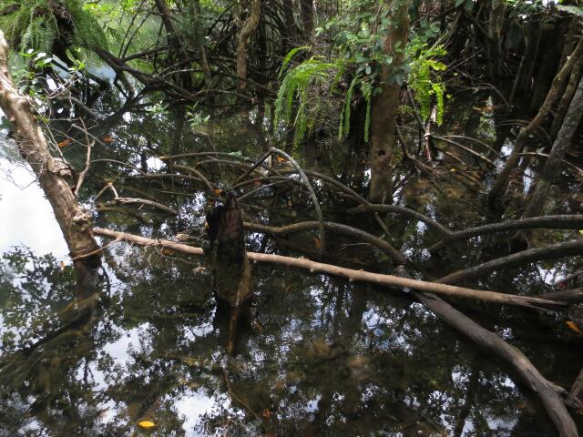 Wir fahren etwas weiter in den Norden und können über einen Boardwalk viele verschiedene Mangrovenarten begucken. Auch hier gibt es viele Farne, die sich auf den Bäumen niedergelassen haben.