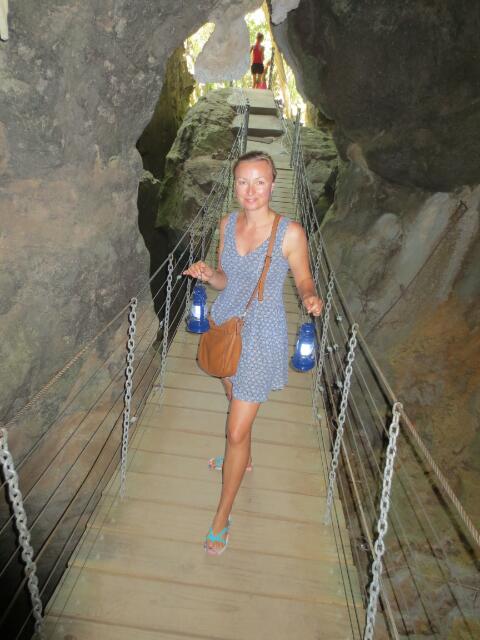Immer wieder schwirren kleine Fledermäuse um uns herum, teilweise riecht man es sogar. Was für die Blumen gut ist (Guano), muss für die Nase nicht zwingend gut sein 😉 Am beeindruckendsten ist der Kathedralen-Raum. Die Höhle hat eine irre Akustik und wir lauschen bei Kerzenschein den Klängen von Haleluja. Ein bißchen Weihnachtsstimmung ist zu spüren, auch wenn wir ansonsten davon nicht viel merken. Es gibt zwar einige geschmückte Häuser, aber schön ist anders…
