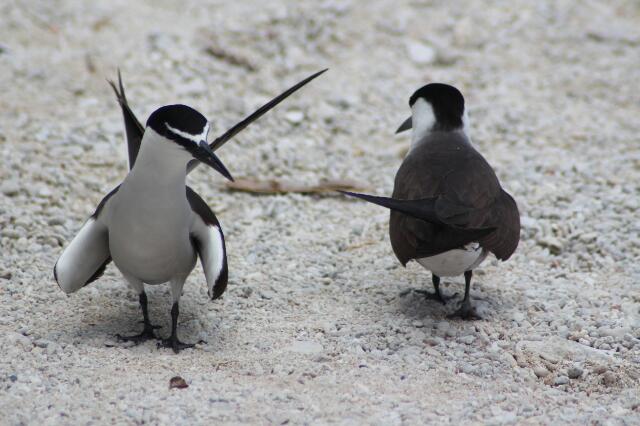 Als unsere Räder aufsetzen, werden wir richtig durgeschüttelt, denn Gras ist halt nicht so eben wie geteerte Flächen, dafür aber natürlicher. Freundlich werden wir von der Crew und hunderten von Vögeln, u.a. der Zügelseeschwalbe begrüßt. Einige haben gerade Nachwuchs bekommen, den sie mit Hingabe füttern. Ein kleiner Rundgang und ab in die Fluten. Auf der Insel nisten gerade Schildkröten (Karett- und grüne Meeresschildkröten), deshalb können wir neben dem tollen Korallenriff und den vielen bunten Fischen immer wieder mit den Schildkröten schwimmen. Herrlich!