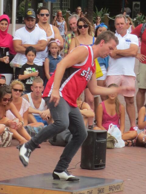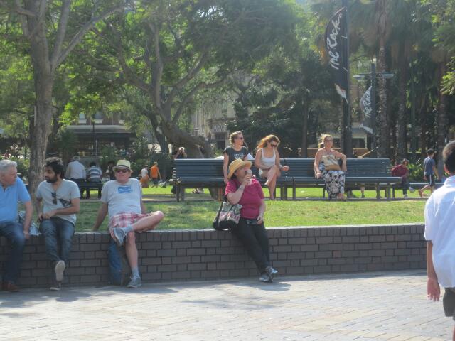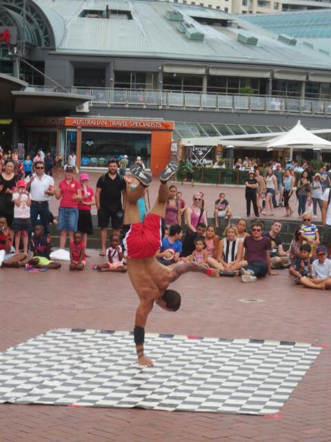 In der ganzen Stadt herrscht ein buntes Treiben, besonders rund um Darling Harbour und Oper. Überall sieht man Leute, die entspannt chillen, skuril sind oder auf urwitzige Weise versuchen, Geld zu verdienen.