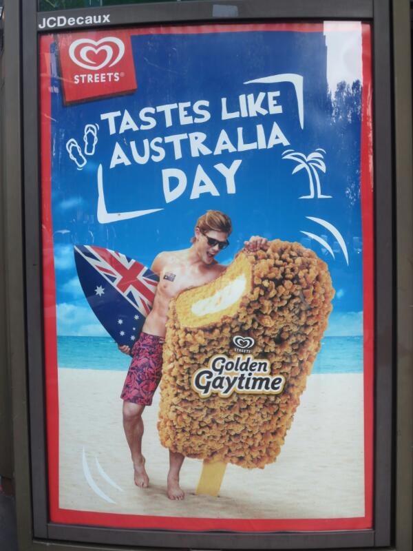 Unseren vorläufig letzten Tag in Sydney widmen wir der Kultur. Wir starten mit einer Stadtführung am Rathaus. Ein echter Sydneysider, wie sich die Einheimischen hier nennen, zeigt uns einige versteckte Stellen. Vom Rathaus, in dem bereits zig Verträge gegengezeichnet worden sind gehen wir zum Kaufhaus QVC. Nun nehmen wir auch die Statue der Queen wahr und einen kleinen sprechenden Hund, der sich für die Anwesenheit bedankt. Ulkiges Kerlchen. Ulkig finden wir auch die Eisreklame, die an fast jeder Ecke zu finden ist. Wie man sieht, ist Sydney eine weltoffene Stadt.
