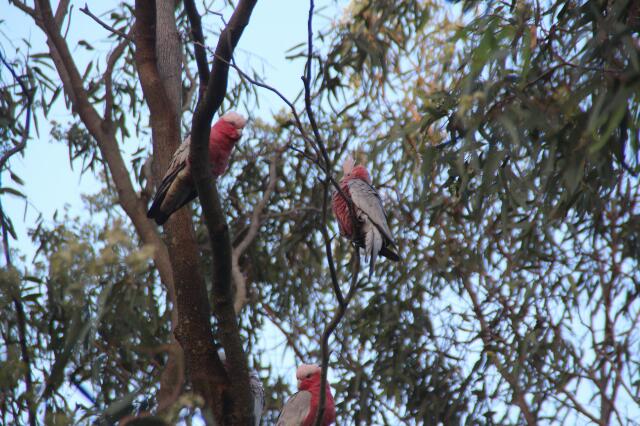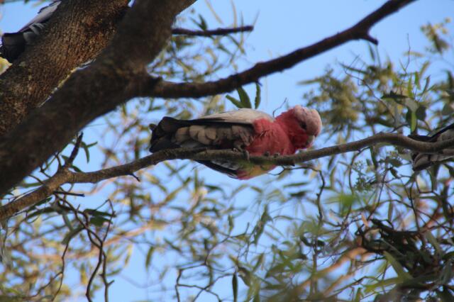 Hier in der Gegend findet man häufig den Rosakakdu. Die Farben seines Bauchgefieders reichen von hellrosa bis pink. Mel ist ganz fasziniert von den Farben 😮 Zumeist treten sie in Schwärmen von ca. 15 Vögeln auf, die einen irren Radau machen. Interessanterweise sind die hübschen Federtiere hier eher verhasst, da sie die Saat der Bauern aufessen. Naja, da wir keine Bauern sind, freuen wir uns sehr über sie.
