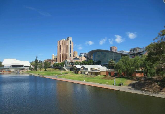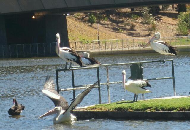 Quer durch die Stadt fließt der Torrens, der Ruhe und Gemütlichkeit hinein bringt. Auf ihm tummeln sich schwarze Schwäne, Möven und australische Pelikane. Neben den Pelikanen mit einer Flügelspannweite von 2,3 m bis 2,6 m wirken die Schwäne sogar recht klein…