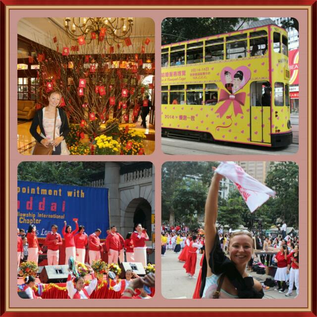 Am nächsten Morgen erkunden wir die Stadt. Hierzu nutzen wir die legendären kleinen Trams, die kreuz und quer durch die Stadt rattern. Für ein paar Hongkongdollar (umgerechnet nur ein paar Cent) kann man in der ganzen City herumfahren. Anläßlich des neuen Jahres ist die ganze Stadt bunt geschmückt mit Orangenbäumen und Kirschblüten in goldenen Trögen. Hong Kong ist eine riesige Stadt, in der sich ein Hochhaus an das Nächste reiht, und überall laufen Menschen umher. Kein Wunder, denn die Stadt hat 7mal so viele Einwohner wie Köln, ist dabei aber 100 Quadratkilometer kleiner. Spannend bei dem Hochhausbau ist, dass bei jeder Konstruktion Feng Shui eine wichtige Rolle spielt. Zur Bauplanung werden spezielle Meister hinzugezogen, um die Harmonie zwischen dem Gebäudekomplex mit seiner Umgang und den Menschen in Einklang zu bringen. Vom Gesang angelockt platzen wir in einen christlichen Open-Air Gottesdienst, in den wir freundlich mit einbezogen werden. Mit wehenden Taschentüchern wird das neue Jahr begrüßt. Hier in Asien sind Christen natürlich auch eher eine Ausnahme.