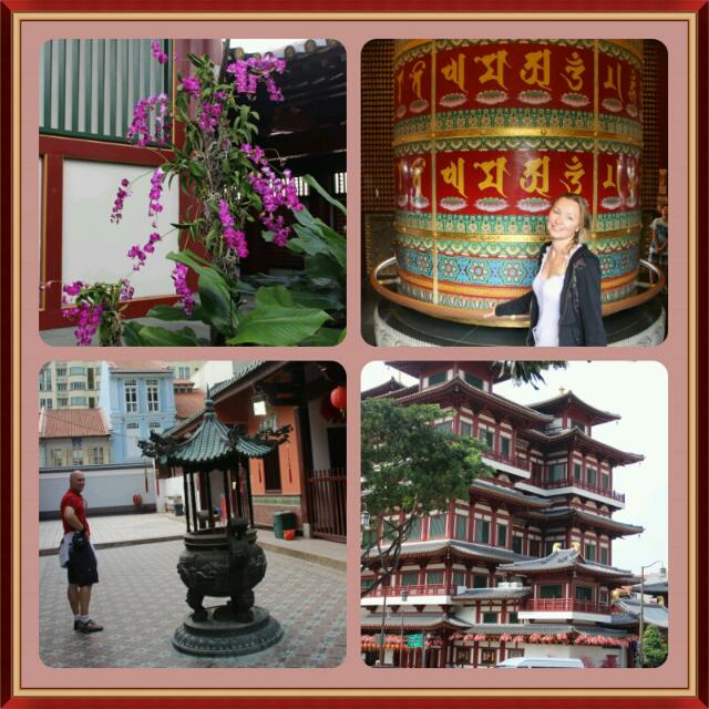 Unser erster richtiger Halt ist der wichtigste hinduistische Tempel Sri Mariamman. Wie die meisten indischen Tempel ist er sehr farbenfroh gestaltet und mit vielen Gottheiten versehen. Weiter geht es zum buddhistischen Tempel Tooth Relic, der ganz mit Blattgold verziert ist. Hunderte kleiner Buddhastatuen schmücken die Wände und Altare. Als stiller Beobachter dürfen wir sogar der Zeremonie der Anbetung beiwohnen. Hierzu werden Räucherstäbchen angezündet und mit gefalteten Händen vor der Stirn auf und ab bewegt. Unsere Freunde nehmen uns mit hinauf in die heiligen Hallen und wir haben die Ehre von einem Mönch gesegnet zu werden. Sehr beeindruckend! Zu guter letzt gehen wir noch in den taoistischen Tempel Thian Hock Keng, der sehr offen und verwinkelt gestaltet ist. Er liegt etwas abseits und wirkt daher sehr entspannend.