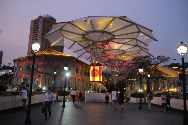 Zum Sonnenuntergang wandern wir in das Hafenviertel und bestaunen den Merlion, das Wahrzeichen Singapurs. Der Name dieser Gestalt leitet sich von seinem Aussehen ab: Mer(maid = Meerjungfrau) und Lion(=Löwe). Für einen perfekten Ausklang des Abends gehen wir noch in das Vergnügungsviertel Clarke Quay. Hier reiht sich ein Restaurant an das andere, es gibt viele Bars mit Livemusik und Clubs zum Tanzen. Für Vergnügen wird gesorgt, denn der Singapurianer genießt das Leben in vollen Zügen. Essen und Trinken hat hier einen sehr hohen Stellenwert. Das passt sehr gut zu uns und wir fühlen uns schnell wohl 😮