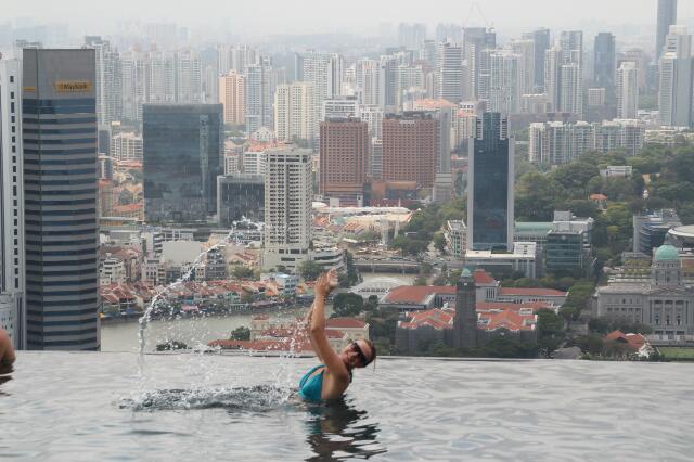 In Singapur gibt es seit einiger Zeit ein neues Wahrzeichen in Form eines Hotels. Ursprünglich wollte man nur ein Casino eröffnen, da man das Geld aber schön vershoppen kann, wurde direkt eine Einkaufsmall von 75.000 Quadratmeter darum gebaut. Selbstverständlich sind hier alle renomierten Designer – viele Uhrenhersteller sind darunter – vertreten. Der größte Luis Vuiton der Welt verteilt sich auf drei Etagen und ist als Glaskomplex auf Wasser gebaut. Ein Hotelgigant, der all dies beinhaltet und auf der Dachterrasse im 57. Stockwerk, 200 Meter über dem Erdboden, einen 150 Meter langen Pool beherbergt. Die Baukosten betrugen 5,5 Milliarden USD, innerhalb von 3 Jahren haben sich diese jedoch breits amotisiert und nun wirft es Milliardengewinne ab. Der 20 Ha große Komplex wid voll auskostet! So, genug der Worte, denn Bilder sagen mehr als 1.000 Worte 🙂