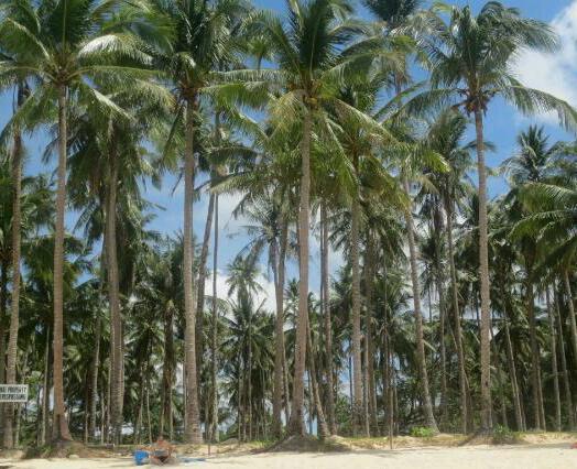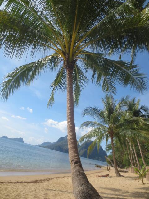 Ingo geht es zwar etwas besser, aber so ganz kuriert ist er noch nicht. Wo kann man sich besser erholen, als am Strand? In der Nähe des Hotels gibt es einen schönen weißen Sandstrand mit Kokusnuss-Palmen. Gemütlich legen wir uns darunter. Natürlich immer die warnenden Worte der Mutter im Hinterkopf: Nicht unter eine Palme legen, denn da sind schon Leute von Kokosnüssen erschlagen worden. Also achten wir darauf, dass keine dranhängen. Nach einiger Zeit segelt ein paar Bäume weiter ein Kokosnussblatt hinunter und auch das möchte man nicht mitbekommen 😮