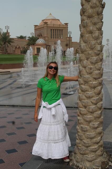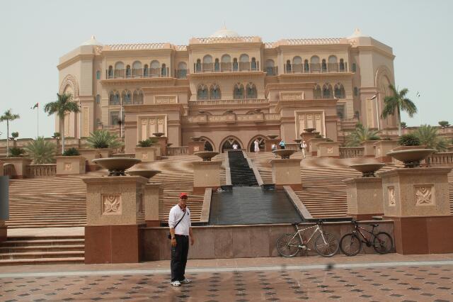Zur besseren Erkundung steigen wir in den Big Bus, ein roter Doppeldecker-Bus, der anderswo Hop on – Hop of heißt. Die Türme der Etihad Tower ragen zwischen 217 und 305 Meter hoch in den Himmel und sind schon von Weitem zu sehen. Auch hierdrin befindet sich wieder eine Einkaufspassage mit den großen Designern der Welt. Weiter geht es zum Emirates Palace. In diesem Luxushotel werden pro Jahr 5 kg essbares Gold in Cappuccinos, Kuchen, Salaten, etc. verarbeitet. Bei Klavier- und Querflötenmusik genießen wir unseren Kaffee im Luxushotel. Dazu wird standesgemäß und kostenlos Gebäck gereicht. Da rentiert sich dann auch der Preis von 8 Euro pro Kaffee wieder 🙂